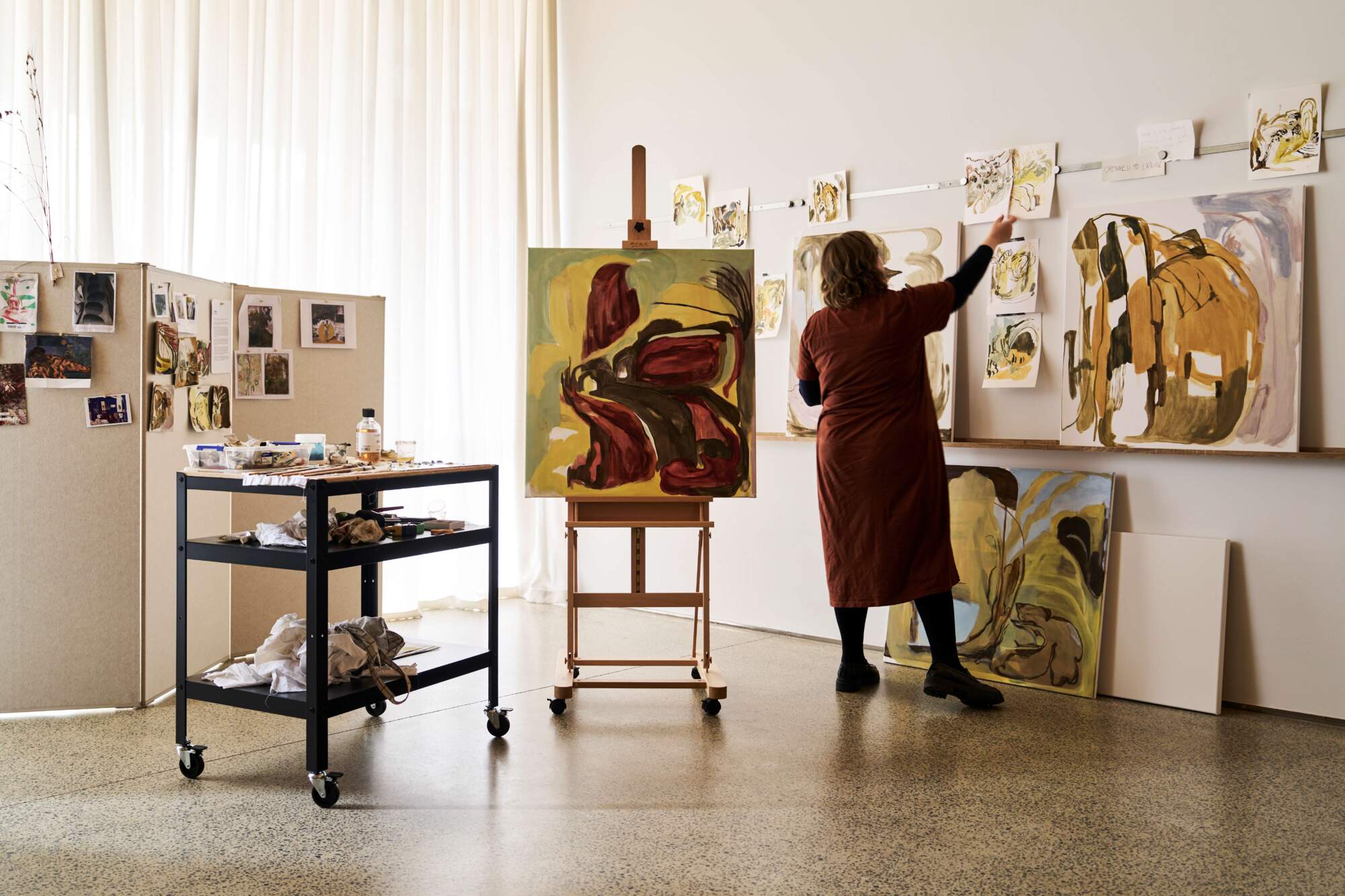 Image: 2025 Urbach recipient Anthea Kemp in the SAM Artist Studio, 2025. Photo: Leon Schoots