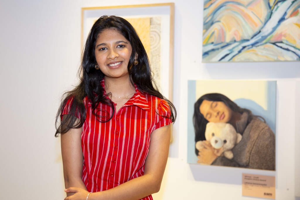 Artist Lehansa Samaranayake’s touching self-portrait Bear Hugs From A Distance earned her the People’s Choice Award in the under-25’s category. Emerging as a promising young creative talent, Samaranayake’s deftly executed painting captures her yearning to embrace a long-distance friend, with a teddy bear standing in her place until their next meeting.