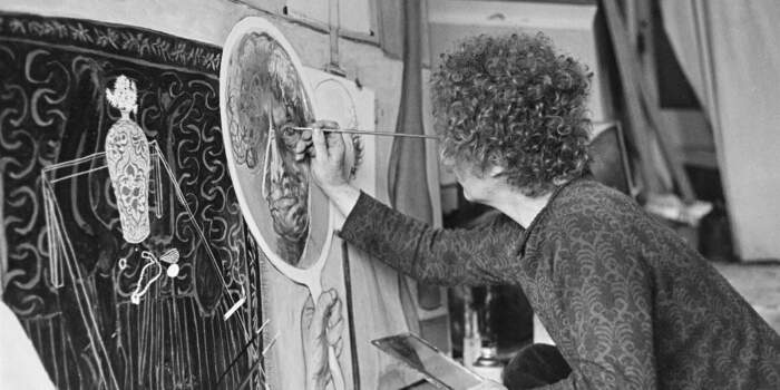 Featuring iconic paintings and early abstractions alongside rarely seen archival photographs depicting Whiteley at work (and sometimes at play) in studios across London, New York and Sydney, Inside the Studio offers a glimpse into Whiteley’s creative world and considers the role of his studio spaces in the scale and context of his works and as an extension of his artistic identity.